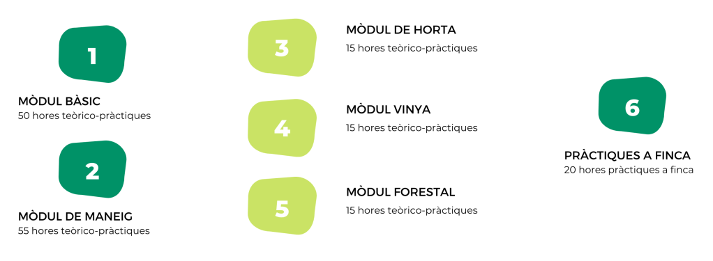 Els cursos específics de 15 hores per a les modalitats: Horta, Vinya i Forestal.